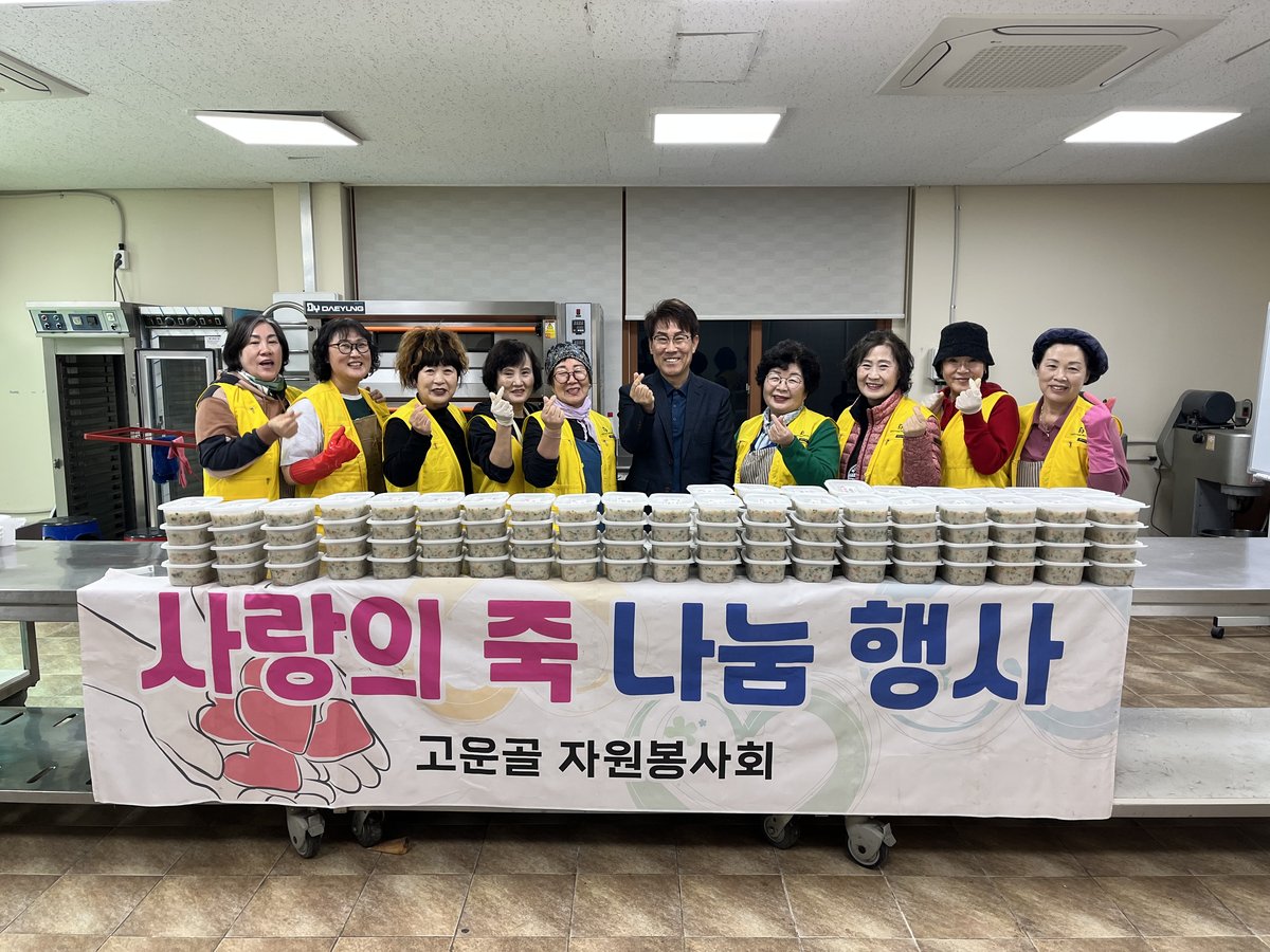 고운골 봉사회는 지난 9일 회원 10여명이 참여한 가운데 홀몸 어르신과 취약계층 120명을 대상으로 정성껏 준비한 죽을 전달하며 안부를 살피는 나눔 활동을 펼쳤다.