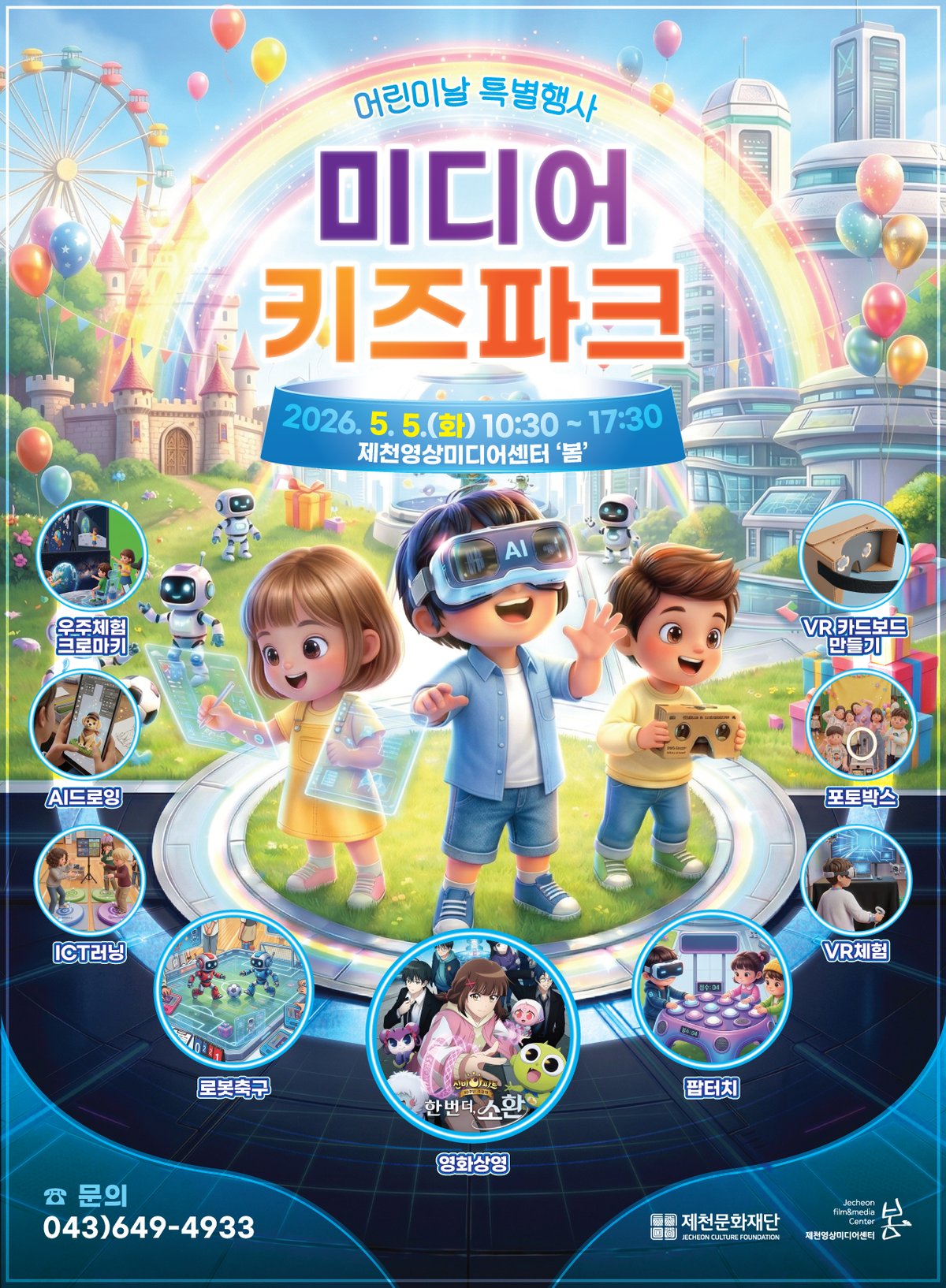 [충청뉴스큐] 제천문화재단이 오는 5월 5일 어린이날을 맞아 제천영상미디어센터 ‘봄’에서 어린이날 특별행사 ‘미디어 키즈파크’를 개최한다.