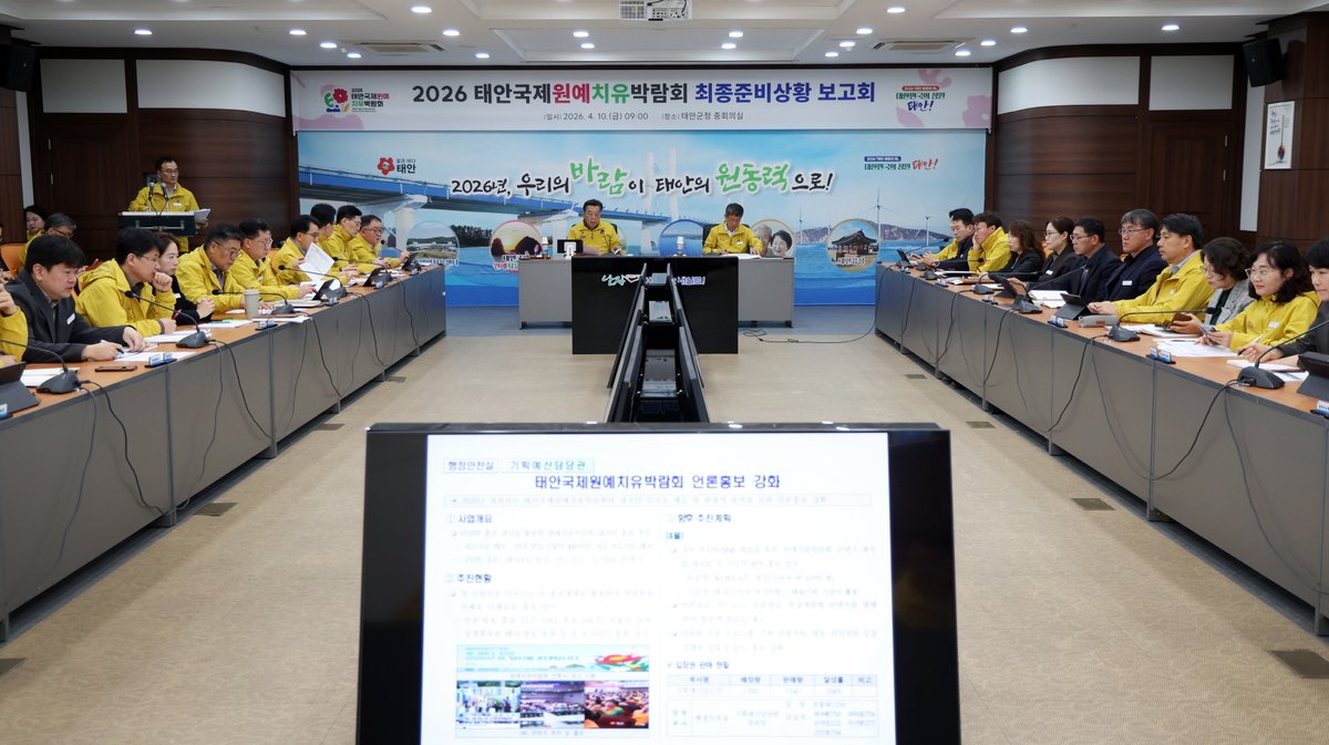 군은 지난 10일 군청 중회의실에서 가세로 군수를 비롯한 부서장 등 40여명이 참석한 가운데 ‘2026 태안국제원예치유박람회 최종 준비상황 보고회’를 개최했다고 밝혔다.