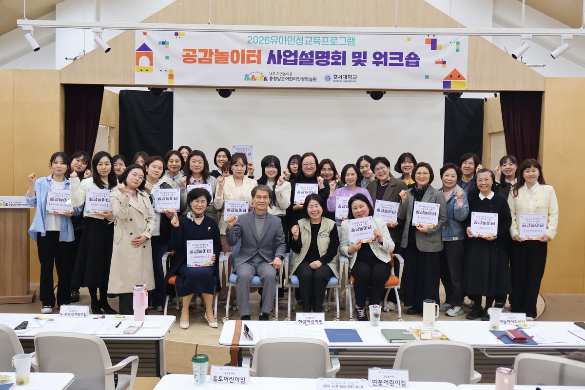 [충청뉴스큐] 충청남도어린이인성학습원은 지난 4월 10일 학습원 내 교육장에서 도내 20개 기관 40여명의 어린이집 원장 및 교사들이 참석한 가운데 ‘2026년 유아인성교육 프로그램 공감놀이터’ 운영을 위한 사업설명회와 워크숍을 개최했다.