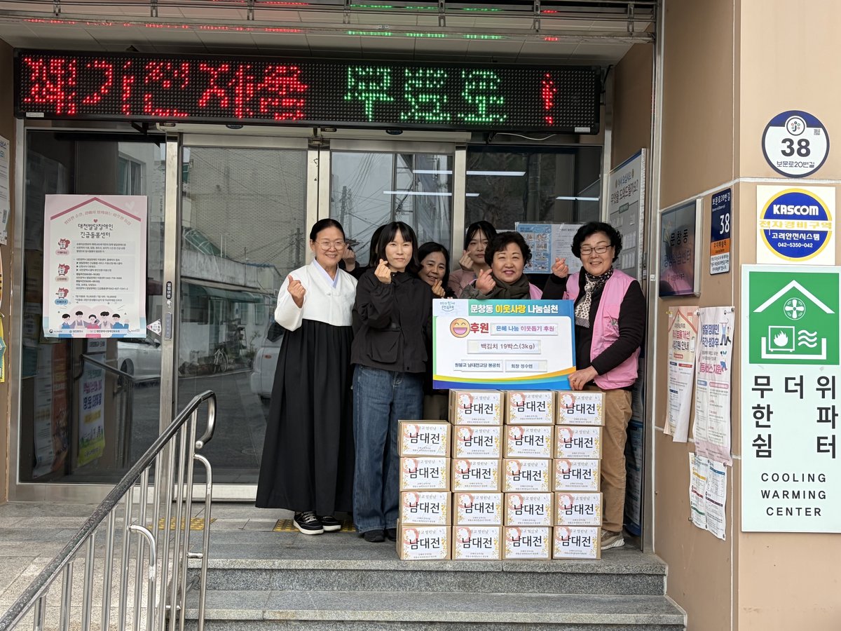[충청뉴스큐] 대전 중구 문창동은 원불교 남대전교당에서 관내 저소득 이웃을 위한 백김치 57kg을 기탁했다고 13일 밝혔다.