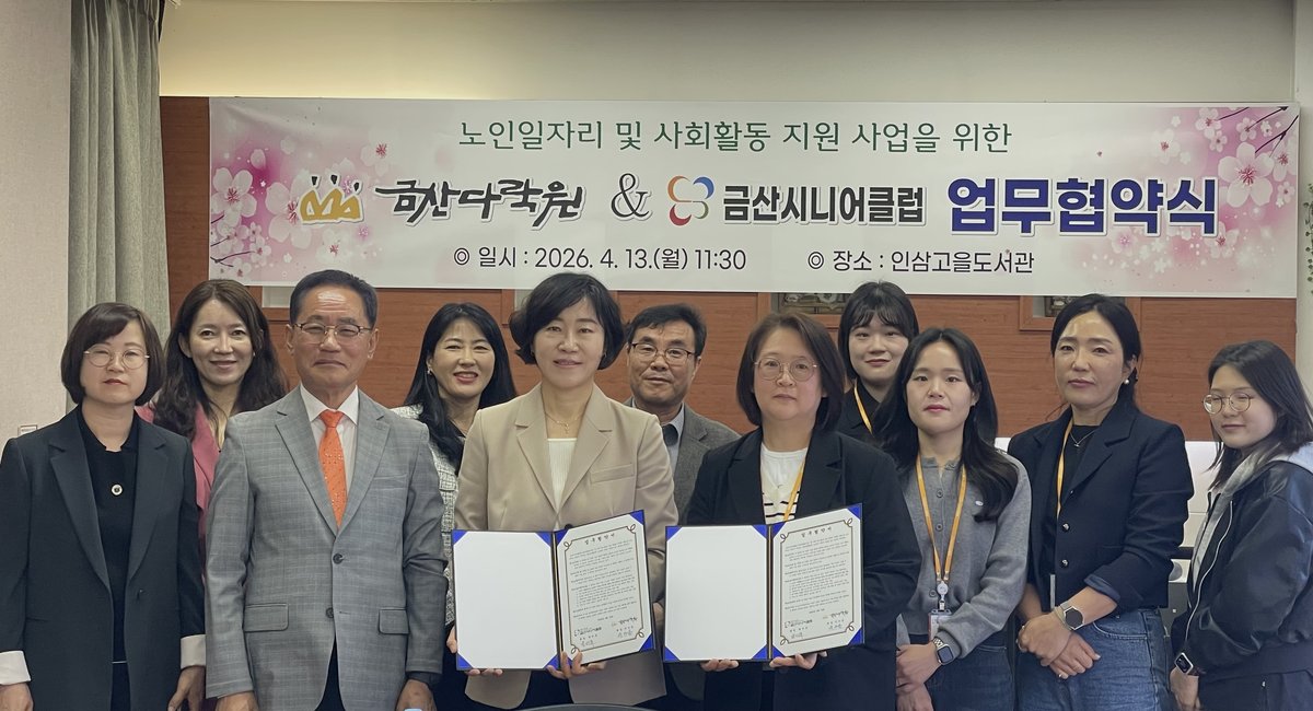 [충청뉴스큐] 금산다락원은 지난 13일 인삼고을도서관에서 금산시니어클럽과 2026년 노인일자리 및 사회활동 지원사업을 위한 업무협약을 체결했다.