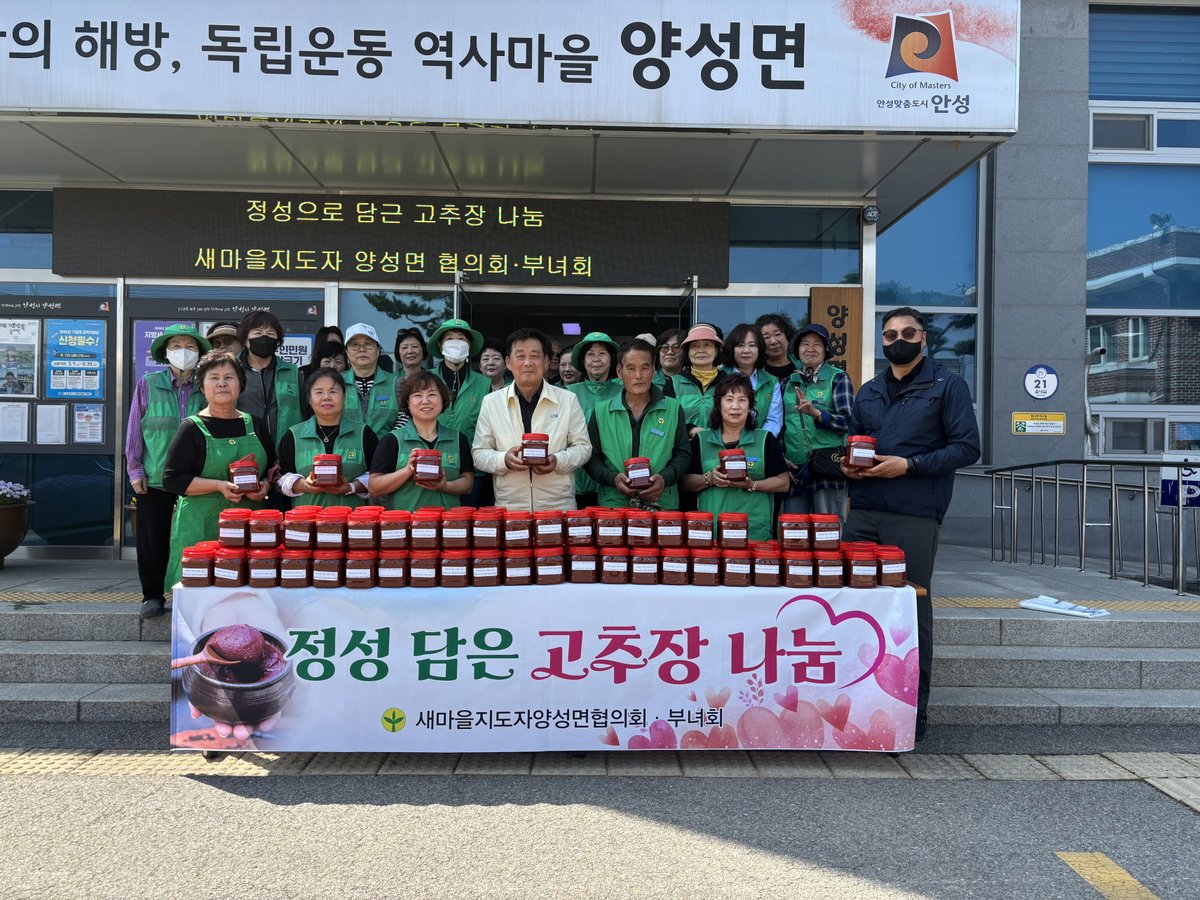 최경미 새마을지도자 양성면부녀회장은 “회원들의 정성이 담긴 고추장이 이웃들에게 작은 위로와 힘이 되길 바란다”며 “지역사회와 함께하는 나눔 활동을 앞으로도 지속해서 이어가겠다”고 전했다.