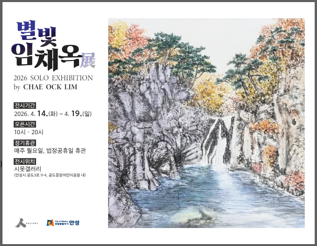 [충청뉴스큐] 안성시 공도 작은미술관 ‘시옷 갤러리’에서 오는 4월 14일부터 19일까지 한국화가 임채옥의 개인전이 개최된다.