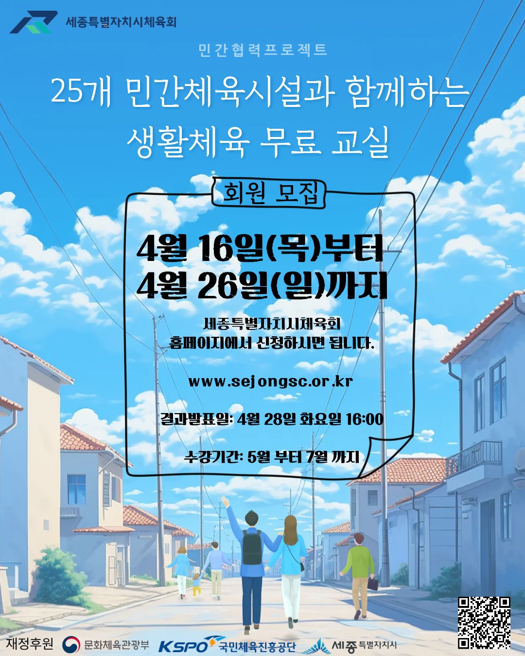 [충청뉴스큐] 세종시가 오는 16일부터 26일까지 지역 내 민간체육시설과 연계해 시민들에게 다양한 생활체육 참여기회를 제공하는 ‘맞춤형 생활체육프로그램’의 상반기 참여자를 모집한다.
