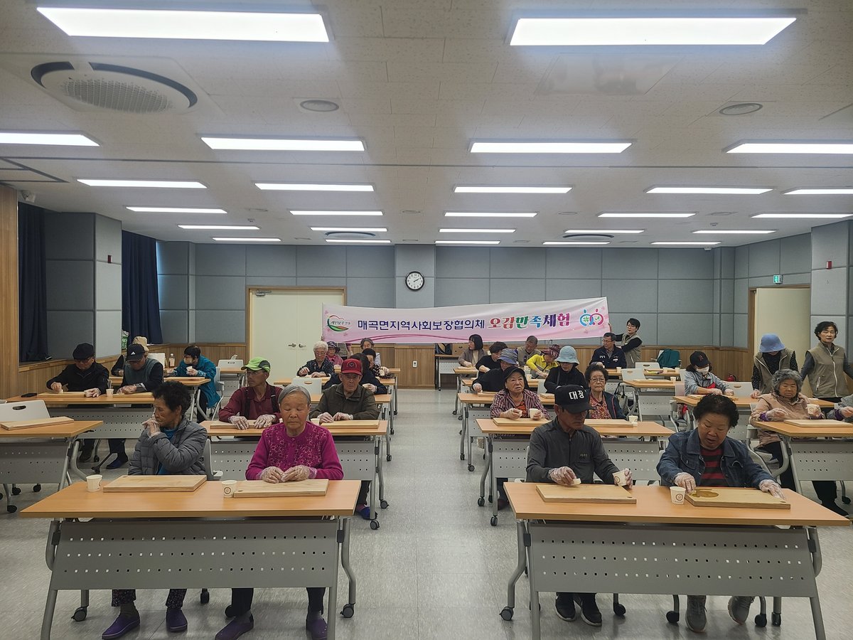 이번 ‘오감만족체험’특화사업에 참여한 어르신들은 매곡면 향기센터에서 도마 만들기를 체험하면서 오랜만에 따듯한 정과 웃음을 나누는 시간을 보냈다.