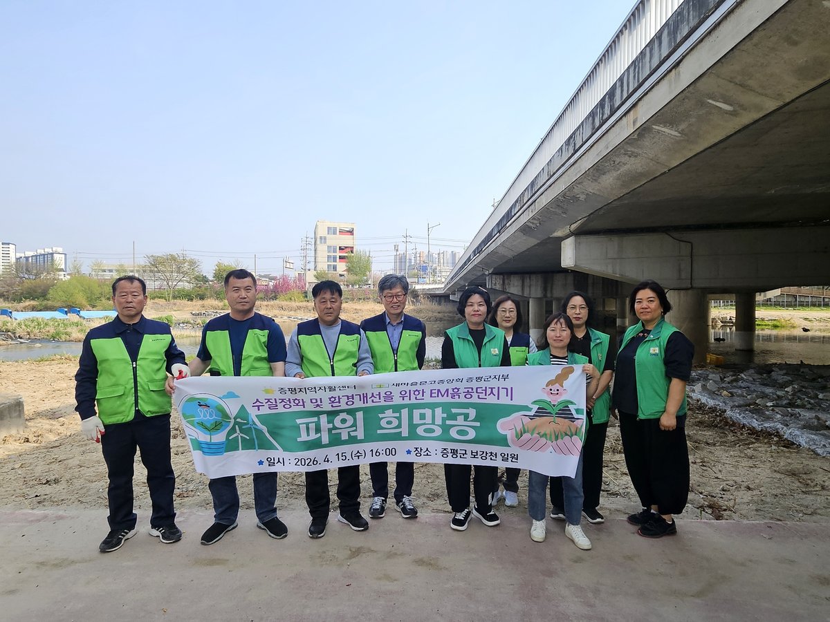 행사에는 자활센터 종사자와 자활근로 참여자, 새마을문고중앙회 회원 등이 참여해 직접 만든 EM 흙공을 보강천에 투척하며 수질 개선 활동을 펼쳤다.