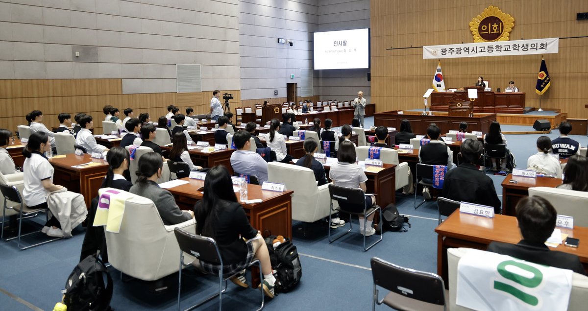[충청뉴스큐] 광주시교육청은 지난 15일 광주광역시의회 본회의장에서 학생의원 80여명이 참석한 가운데 ‘2026년 광주광역시고등학교학생의회 개원식 및 제1차 정기회’를 개최했다.