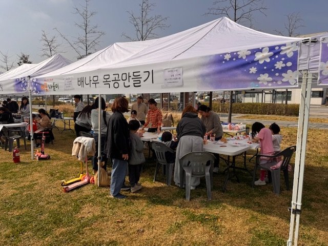 [충청뉴스큐] 평택시는 지난 11일과 12일 이틀간 함박산중앙공원 배꽃 나들이 행사에서 목재 체험 부스를 운영했다.