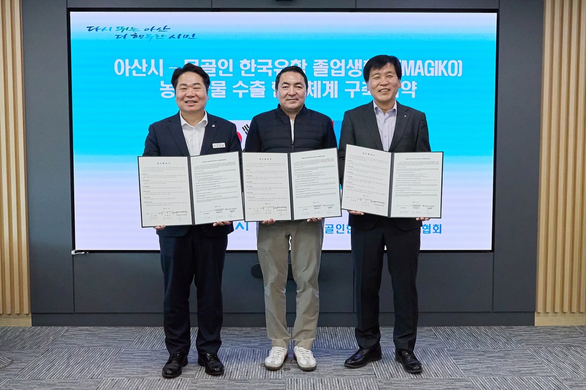 시는 16일 몽골인한국유학졸업생협회, 아산시조합운영협의회와 함께 아산 농특산물의 몽골 시장 진출을 위한 업무협약을 체결했다고 밝혔다.