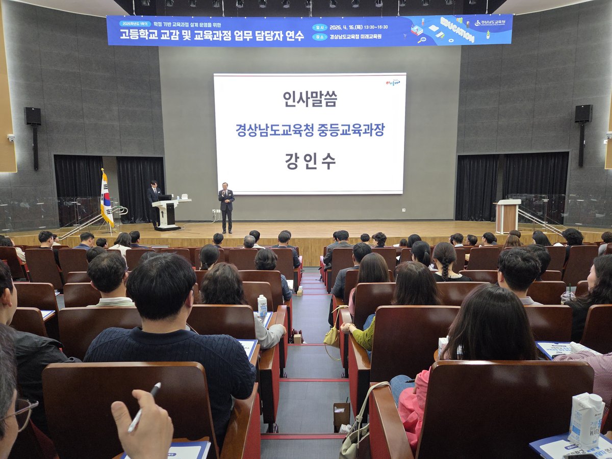 [충청뉴스큐] 경상남도교육청은 도내 고등학교 교원 580여명을 대상으로 ‘2026학년도 1학기 고교학점제 기반 교육과정 설계·운영 연수’를 16일 서부권, 17일 동부권에서 개최한다.