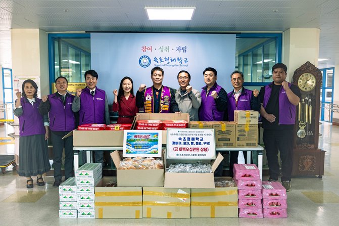 속초라이온스클럽 회원들은 “작은 나눔이지만 학생들과 교직원들에게 기쁨이 되기를 바란다”며 앞으로도 지역사회와 함께하는 지속적인 봉사와 나눔 활동을 이어가겠다“라고 밝혔다. 백행학 교장은 ”학생들과 교직원 모두에게 큰 힘이 되는 따뜻한 나눔에 깊은 감사를 드린다“며 ”이번 나눔이 학생들의 정서적 안정과 사회적 유대감 형성에 큰 도움이 될 것으로 기대한다“라고 말했다.