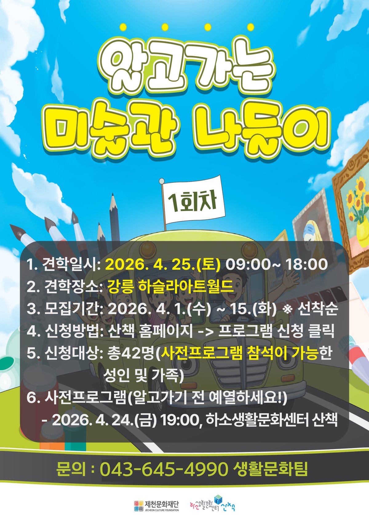 오는 25일 진행되는 1회차 견학은 강원도 강릉에 위치한 하슬라아트월드에서 진행되며 카카오톡 채널 ‘제천문화통통’을 통해 사전 모집된 40여명의 제천시민이 참여한다.