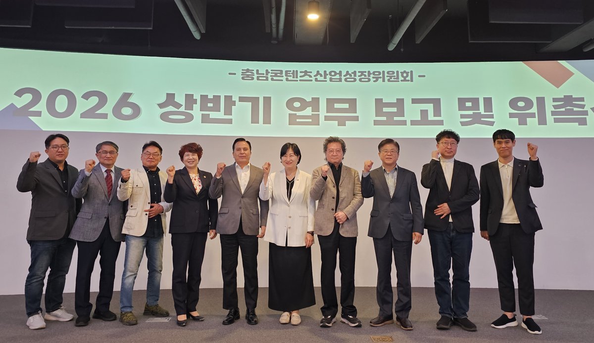 [충청뉴스큐] 충남콘텐츠진흥원은 지난 4월 17일 충남콘텐츠기업지원센터 이벤트홀에서 ‘충남콘텐츠산업성장위원회 2026년 상반기 업무보고 및 위촉식’을 개최했다고 밝혔다.