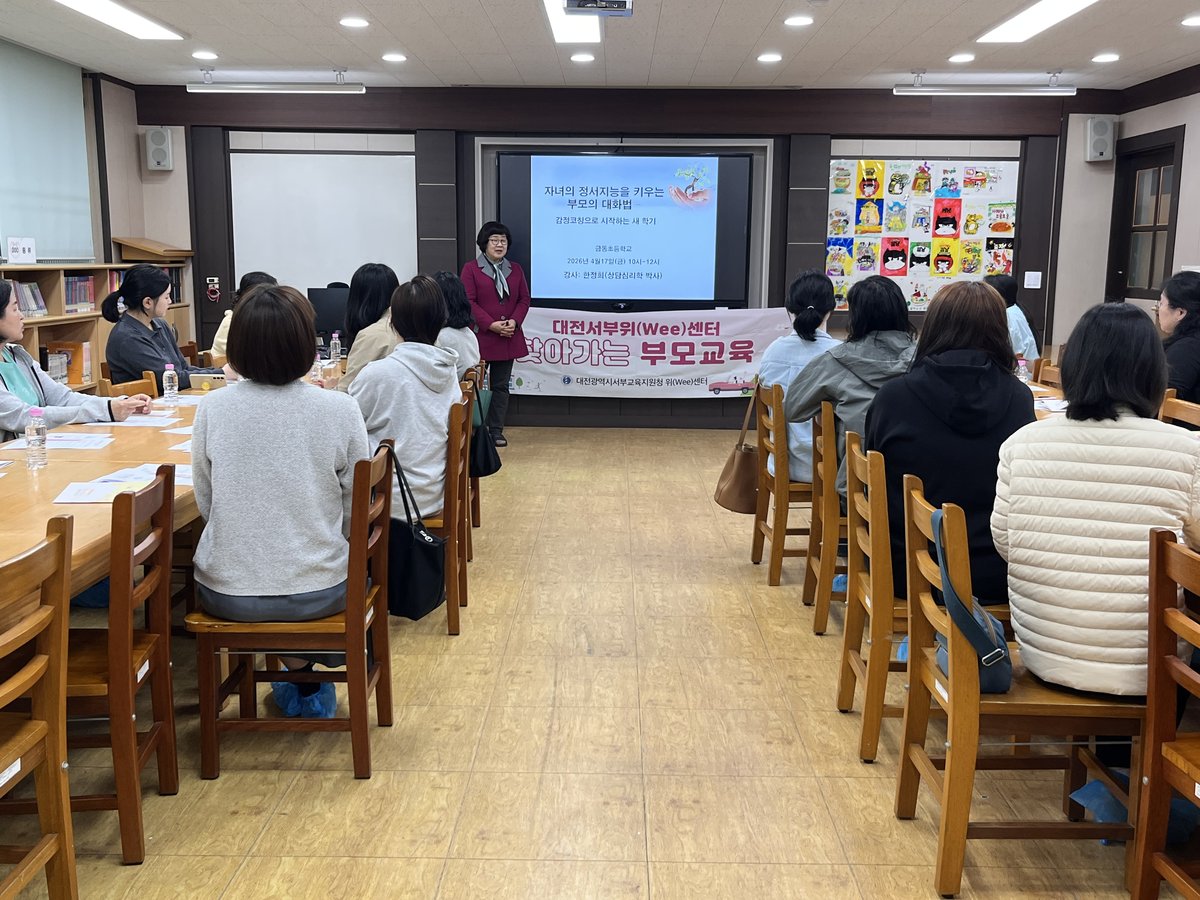 [충청뉴스큐] 대전서부교육지원청 위 센터는 4월 17일 24일 5월 8일 총 3일에 걸쳐 관내 학부모를 대상으로 찾아가는 부모 교육 ‘자녀의 정서지능을 키우는 부모의 대화법: 감정코칭으로 시작하는 새 학기’를 운영한다고 밝혔다.