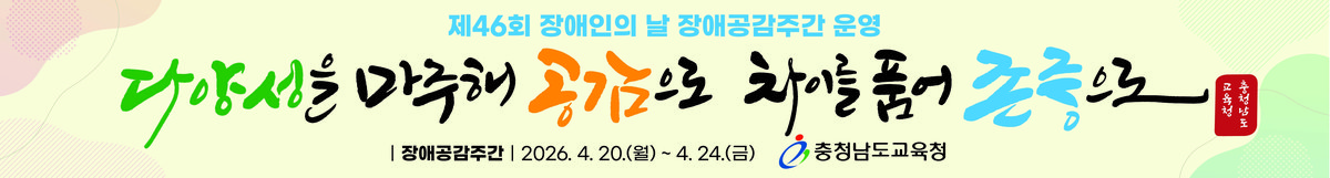 [충청뉴스큐] 충남교육청은 제46회 장애인의 날을 맞아 장애공감문화 확산을 위해 4월 20일 ~ 24일을 ‘장애공감주간’ 으로 운영한다고 밝혔다.