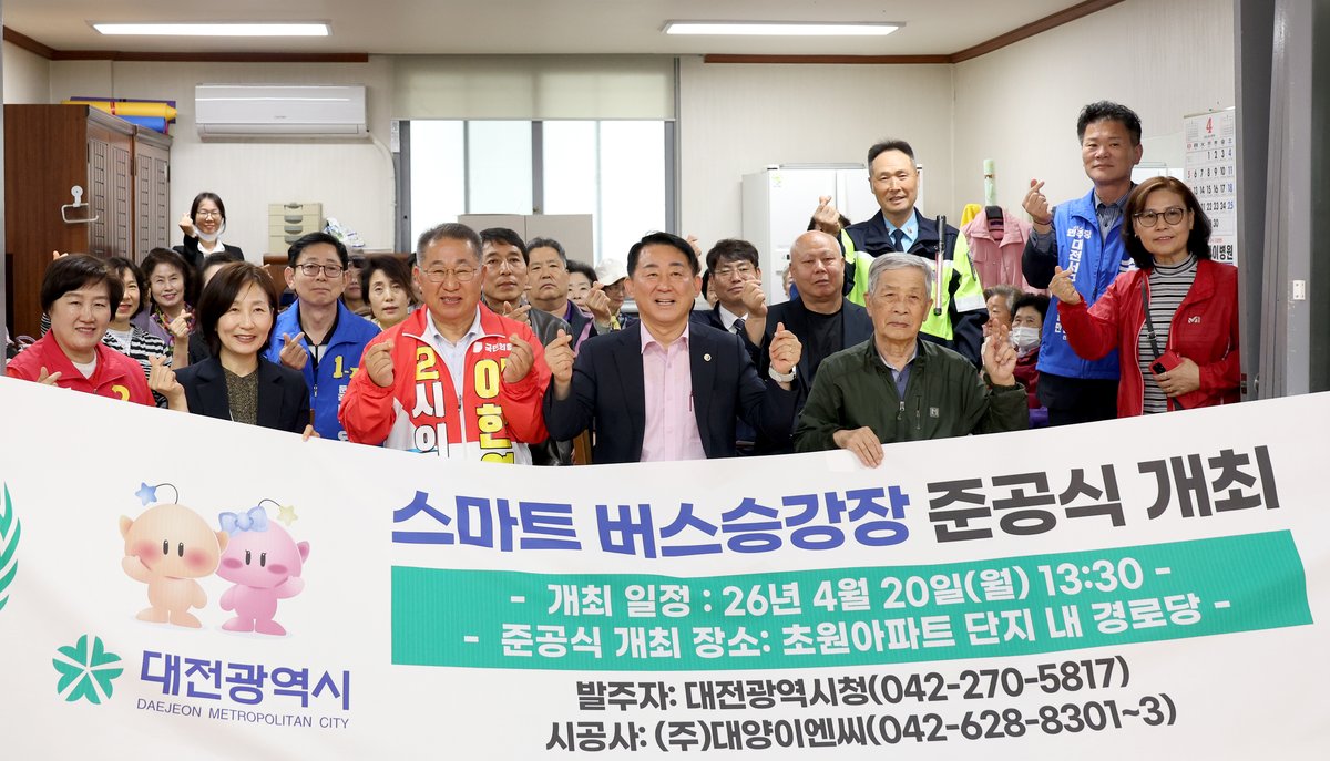 [충청뉴스큐] 이한영 대전시의원은 4월 20일 서구 만년동 초원아파트 일원에서 열린 ‘대전형 시내버스 스마트승강장’준공식에 참석했다.
