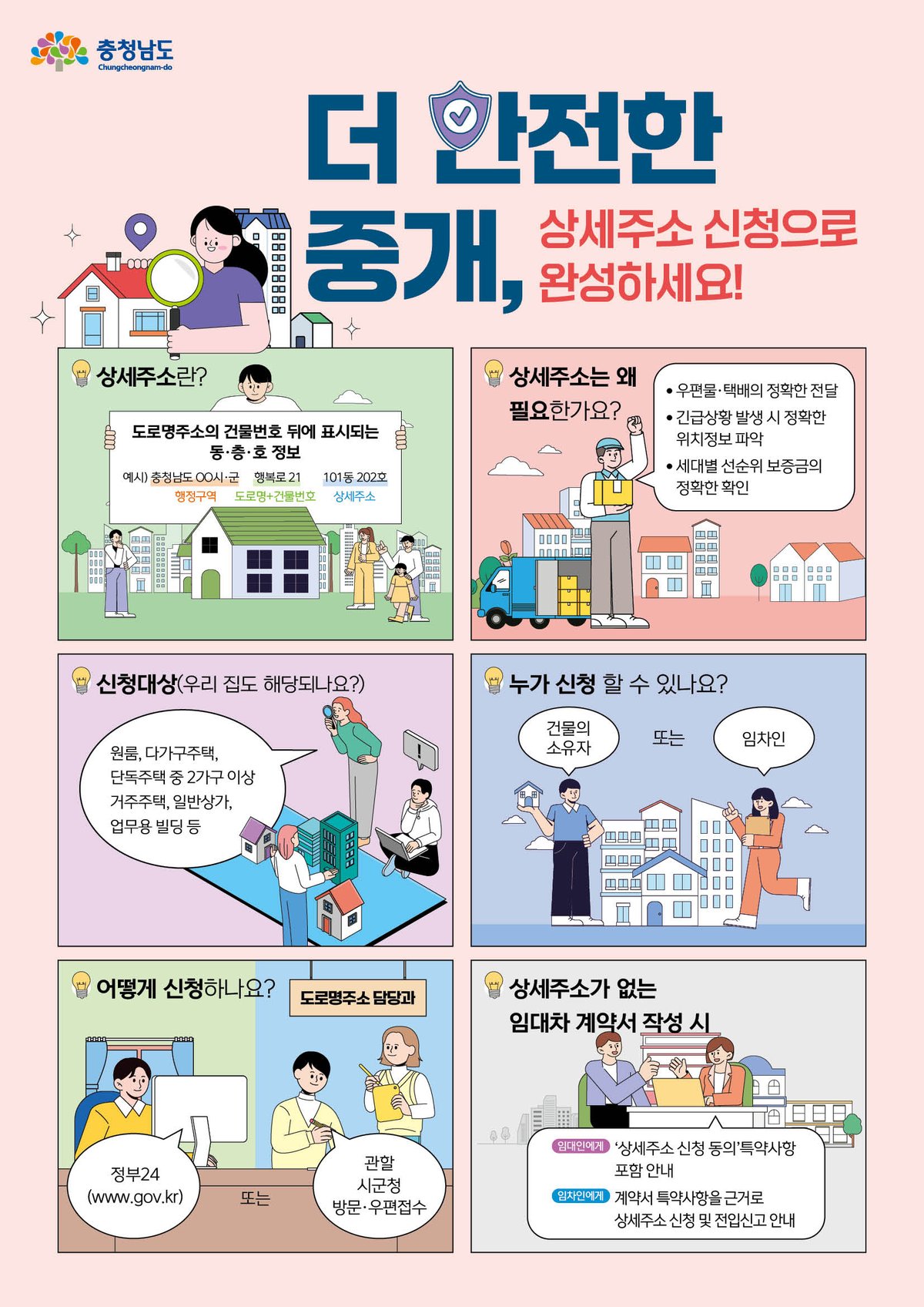 임차인과 건물 소유자에게는 상세주소 신청 필요와 편의성을 안내하고 부동산 거래 접점에 있는 공인중개사에게는 ‘더 안전한 중개’를 위한 협조를 당부할 계획이다.