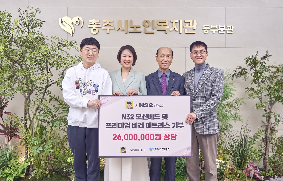 N32는 시몬스 침대의 ESG 경영 철학을 기반으로 선보인 라이프스타일 브랜드로 이번 후원을 통해 약 2600만원 상당의 ‘N32 모션베드’ 2개와 ‘N32 레귤러 토퍼’등을 충주시노인복지관에 전달했다.
