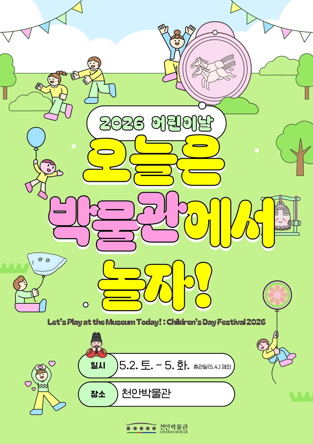 [충청뉴스큐] 천안박물관은 다음달 2~ 5일 어린이날 특별행사 ‘오늘은 박물관에서 놀자’를 운영한다고 21일 밝혔다.