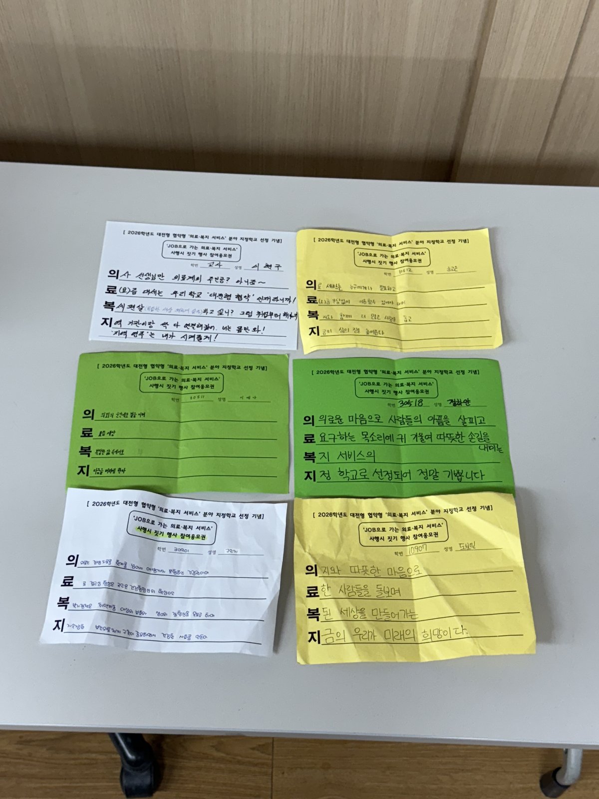 첫 프로그램으로 진행된 ‘의료복지’ 사행시 짓기 이벤트에는 학생 및 교직원이 적극적으로 참여해 새로운 도약을 앞둔 학교의 미래에 대해 창의적인 아이디어를 나누고 소통하는 시간을 가졌다.