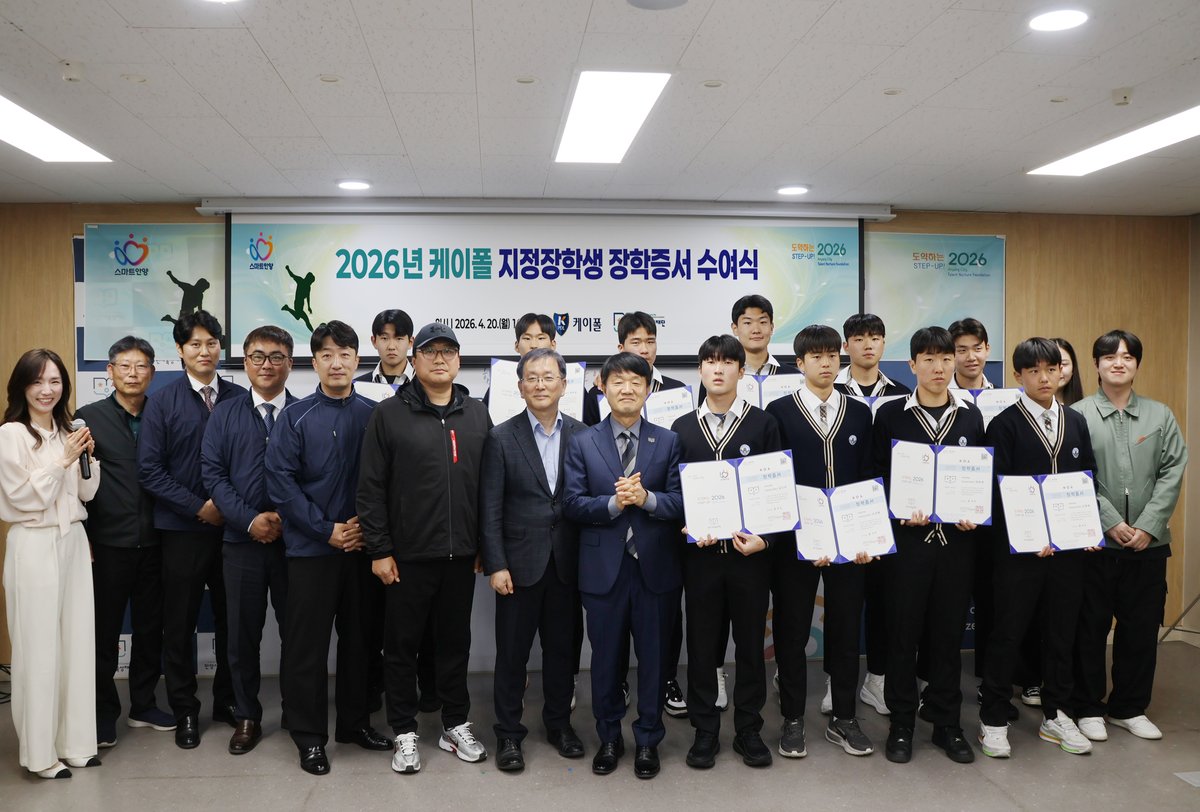김학수 케이폴 대표는 “안양의 미래를 이끌 축구 꿈나무들이 운동에 전념할 수 있는 환경을 만드는 데 보탬이 되어 기쁘다”며 “장학생들이 안양을 넘어 대한민국을 대표하는 선수로 성장할 수 있도록 앞으로도 지속적인 지원을 이어 나가겠다”고 말했다.