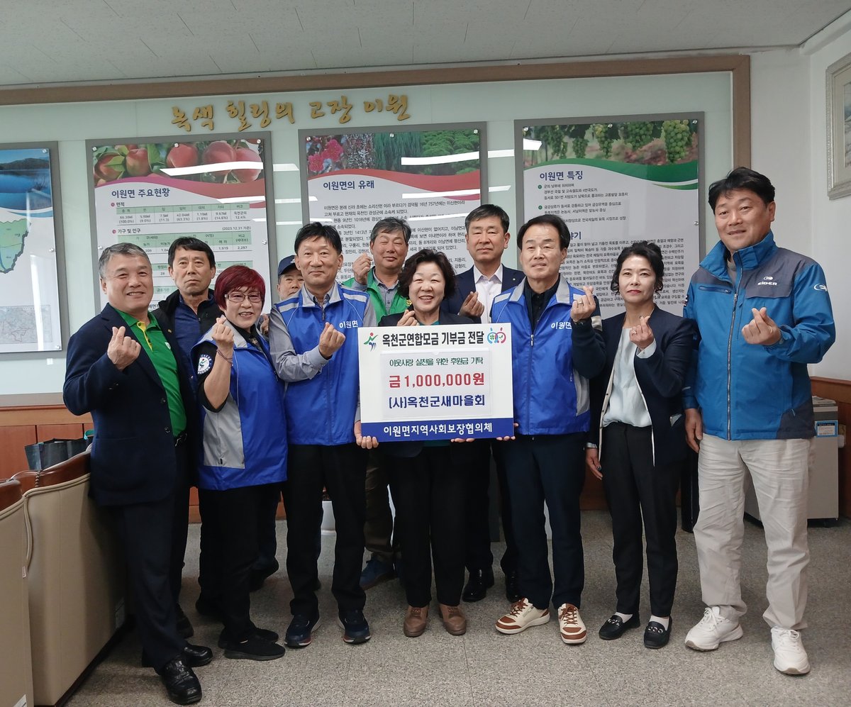 여기에 옥천군새마을회도 묘목축제 수익금 일부인 성금 100만원을 이원면 지역사회보장협의체에 기탁하며 나눔에 동참했다.