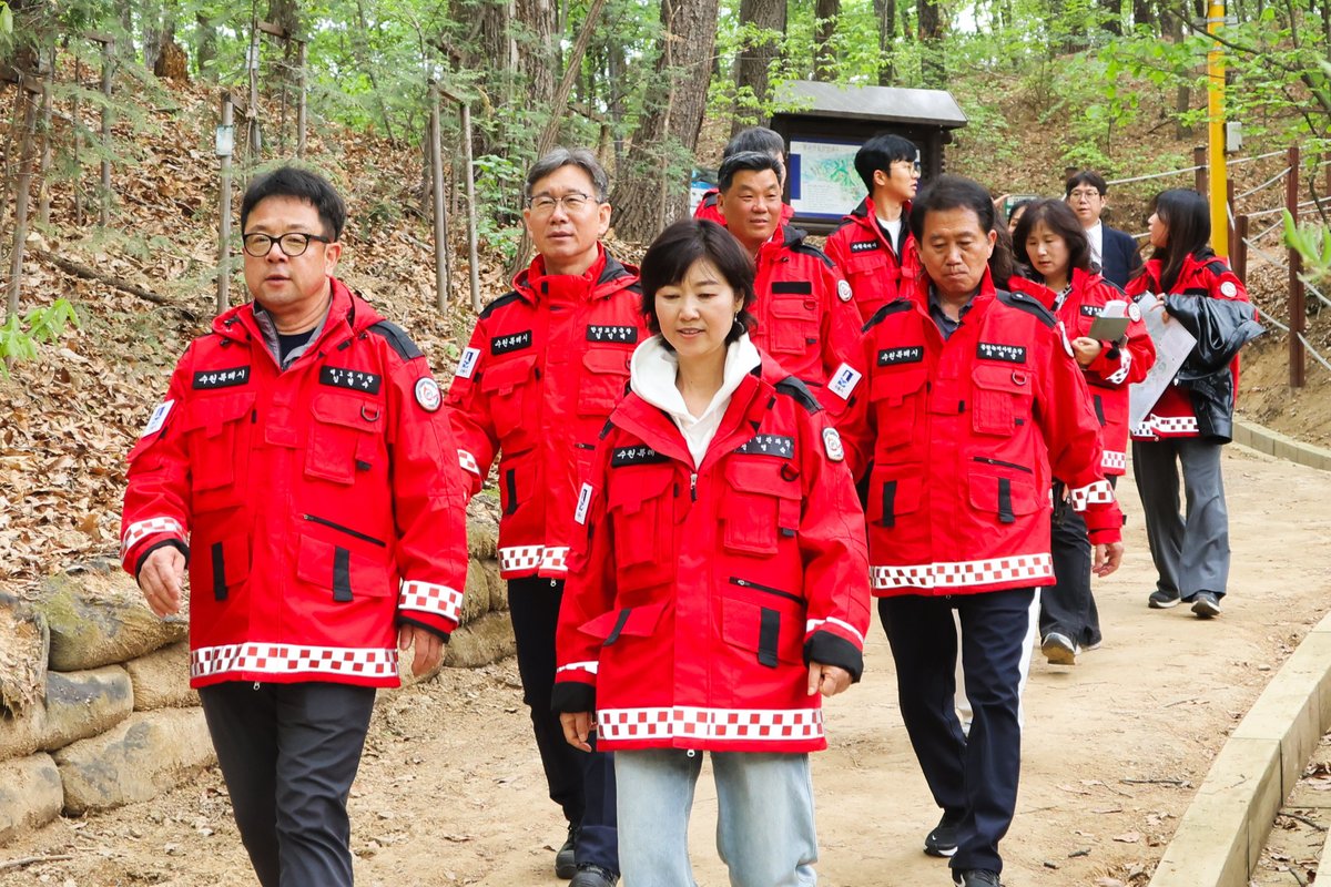 김현수 제1부시장은 공직자들과 함께 광교산 산림욕장 감시탑과 초소, 광교쉼터 초소 등을 방문해 현장 근무자의 애로사항을 청취하고 산불 감시체계와 비상 연락망, 진화 장비 상태 등을 점검했다 김현수 제1부시장은 “건조한 날씨가 이어지는 봄은 작은 불씨도 대형 산불로 확산될 수 있는 위험한 시기”며 “현장 중심으로 철저하게 사전 점검을 하고 대비 태세 유지해 달라”고 당부했다.
