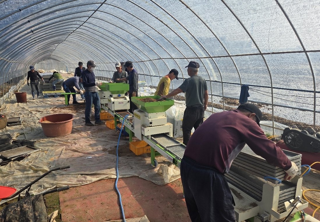 이번 기금사업을 통해 지원받은 육묘 파종기는 모판 투입기부터 모판 적재 이송기까지 장착되어 파종작업의 전 과정을 일괄 자동화로 추진할 수 있어 기존 파종작업의 필수 인력을 9명에서 6명으로 줄일 수 있는 노동력 절감 효과가 있었으며 기존 육묘 작업량이 시간당 600장 내외였던 것에 반해 모판 작업량을 자유롭게 조절할 수 있어 시간당 800~1200장까지 작업이 가능해지는 등 작업의 효율성도 극대화할 수 있어 참여 회원들의 만족도가 높았다.