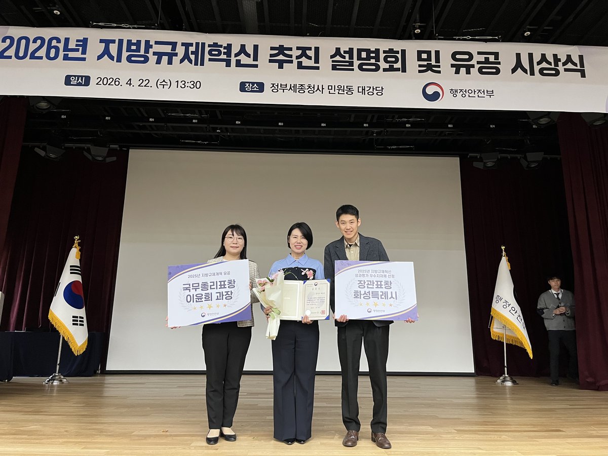 [충청뉴스큐] 화성특례시는 행정안전부가 주관한 ‘2025년 지방규제개혁 유공 정부포상’에서 단체 부문 행정안전부장관 표창을, 이윤희 효행구 돌봄복지과장이 개인 부문 국무총리표창을 각각 수상했다고 밝혔다.