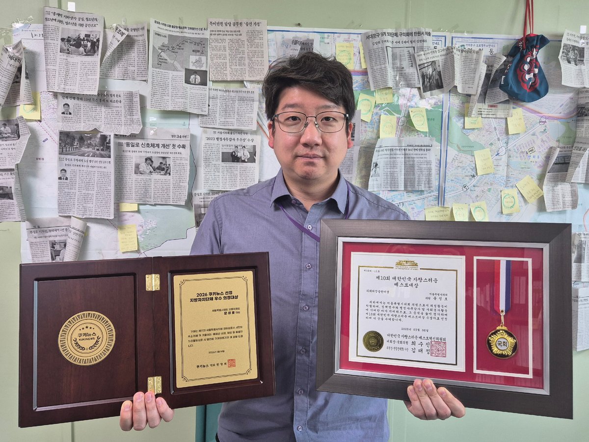 문성호 의원은 지난 3월 6일 ‘제10회 대한민국 자랑스러운 베스트대상’의회의정공헌대상을 수상한 데 이어 지난 14일에는 ‘2026 지방자치단체 우수의정대상’을 수상하며 의정활동 2관왕에 올랐다.