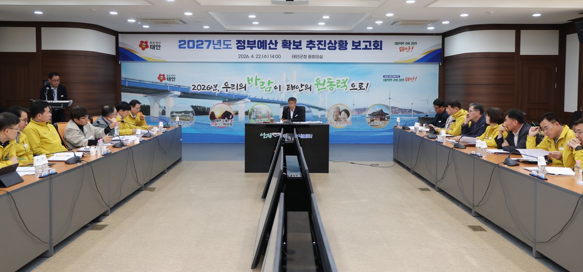 [충청뉴스큐] 태안군이 22일 군청 중회의실에서 이주영 부군수와 각 부서장 등 30여명이 참석한 가운데 ‘2027년도 정부예산 확보 추진 상황 보고회’를 열고 부처 예산안 반영 현황을 점검하며 세부 대응 전략 논의에 나섰다.