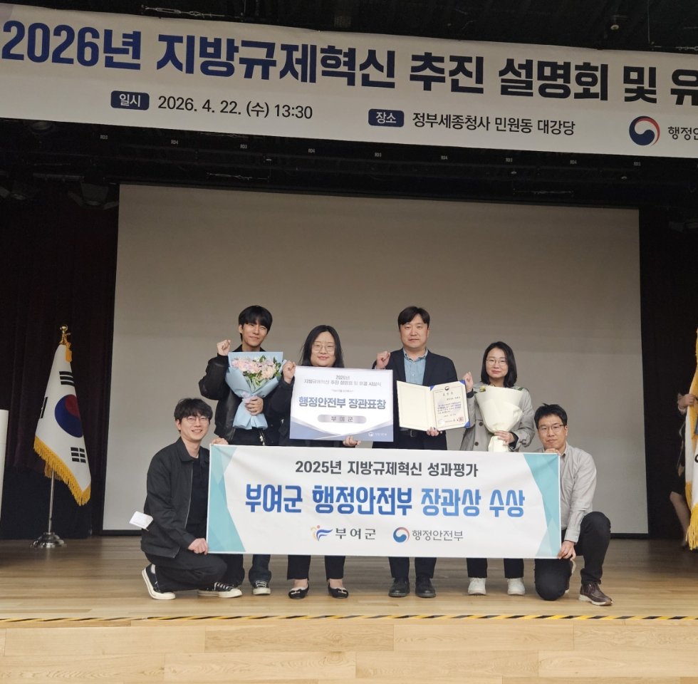 [충청뉴스큐] 충남 부여군은 행정안전부 주관‘2025 지방자치단체 규제혁신 추진 성과평가’에서 행정안전부 장관 표창을 받았다고 23일 밝혔다.