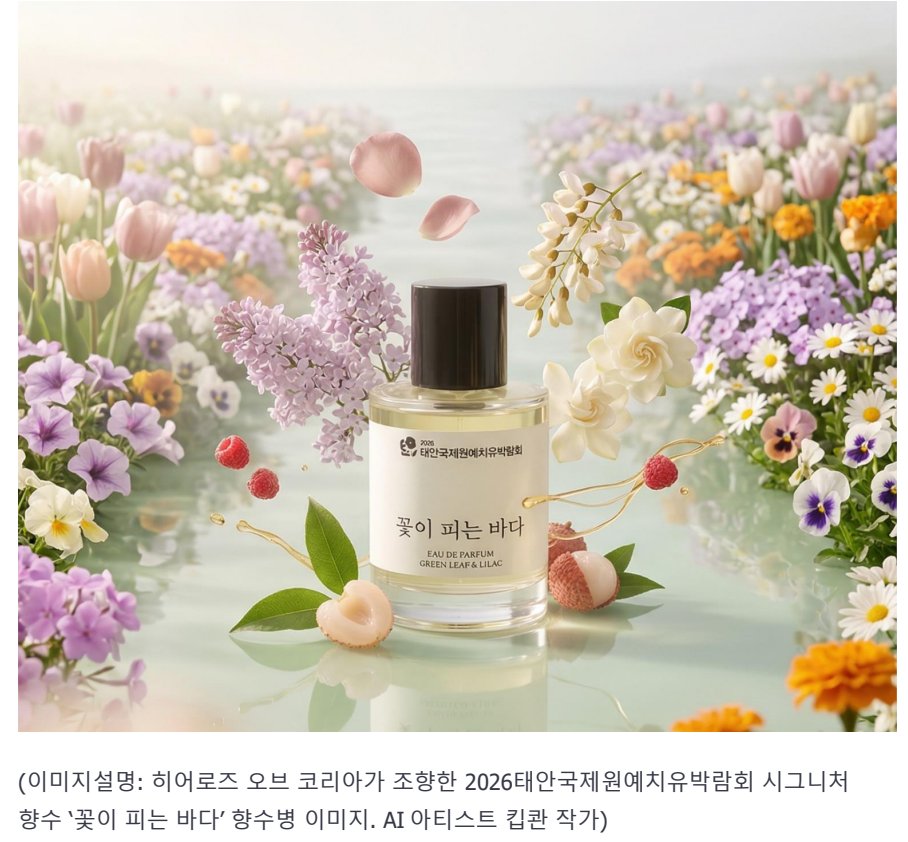 태안국제원예치유박람회조직위는 향수 브랜드 히어로즈 오브 코리아와 업무협약을 맺고 박람회 시그니처 향수 ‘꽃이 피는 바다’를 출시해 관람객에게 새로운 치유 경험을 제공한다고 밝혔다.