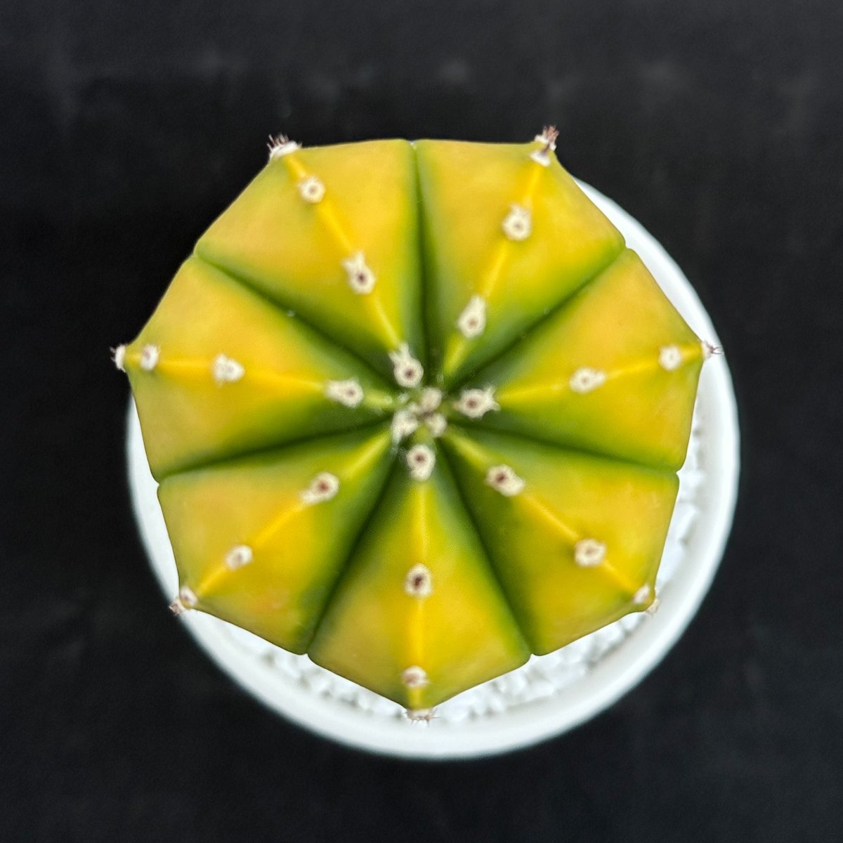 ‘골드아이’는 노란색 바탕에 연두색 무늬가 나타나는 품종이다.색감이 선명하게 유지되고모구 절단 시 자구가 발생해 증식이 가능하다.