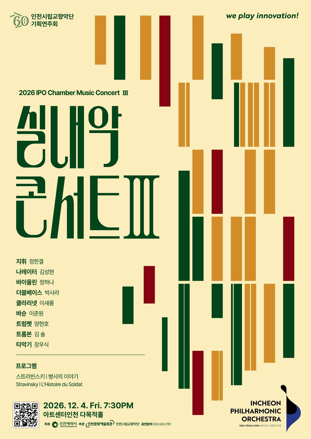 올해 인천시향의 실내악 콘서트 시리즈는 기존의 정형화된 틀을 벗어나, 출연진의 외연을 확장하고 장르 간 결합을 시도하며 한층 진화된 무대를 선보인다.