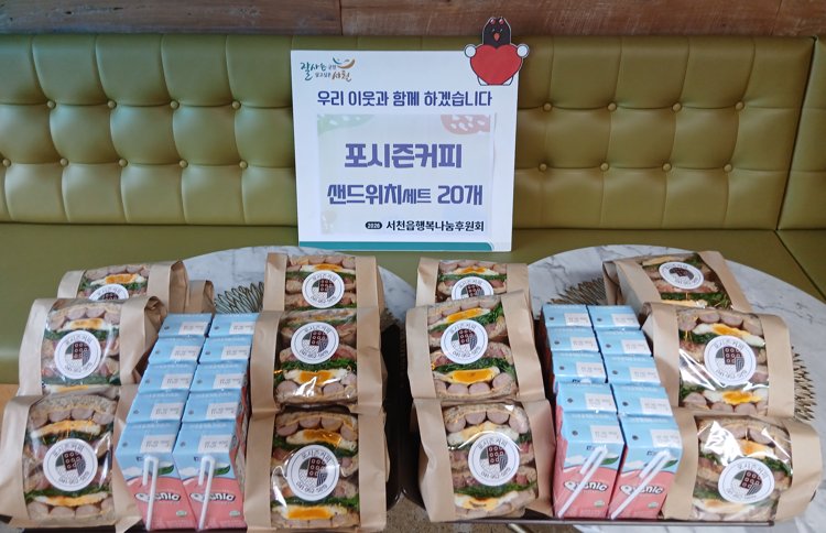 [충청뉴스큐] 서천읍 소재 포시즌커피 김유리 대표는 지난 22일 직접 만든 샌드위치와 음료 20세트를 서천읍행복나눔후원회에 후원해 관내 저소득 가구 아동·청소년에게 전달됐다.