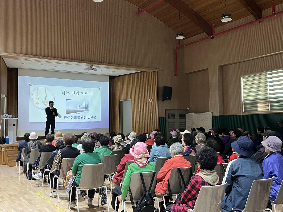 이날 강사로 나선 안성성모병원 김수연 병원장은 퇴행성 척추질환의 주요 원인과 증상을 상세히 설명하고 실생활에서 실천 가능한 올바른 자세 및 근력 강화 운동법을 시연해 참석자들의 큰 호응을 얻었다.