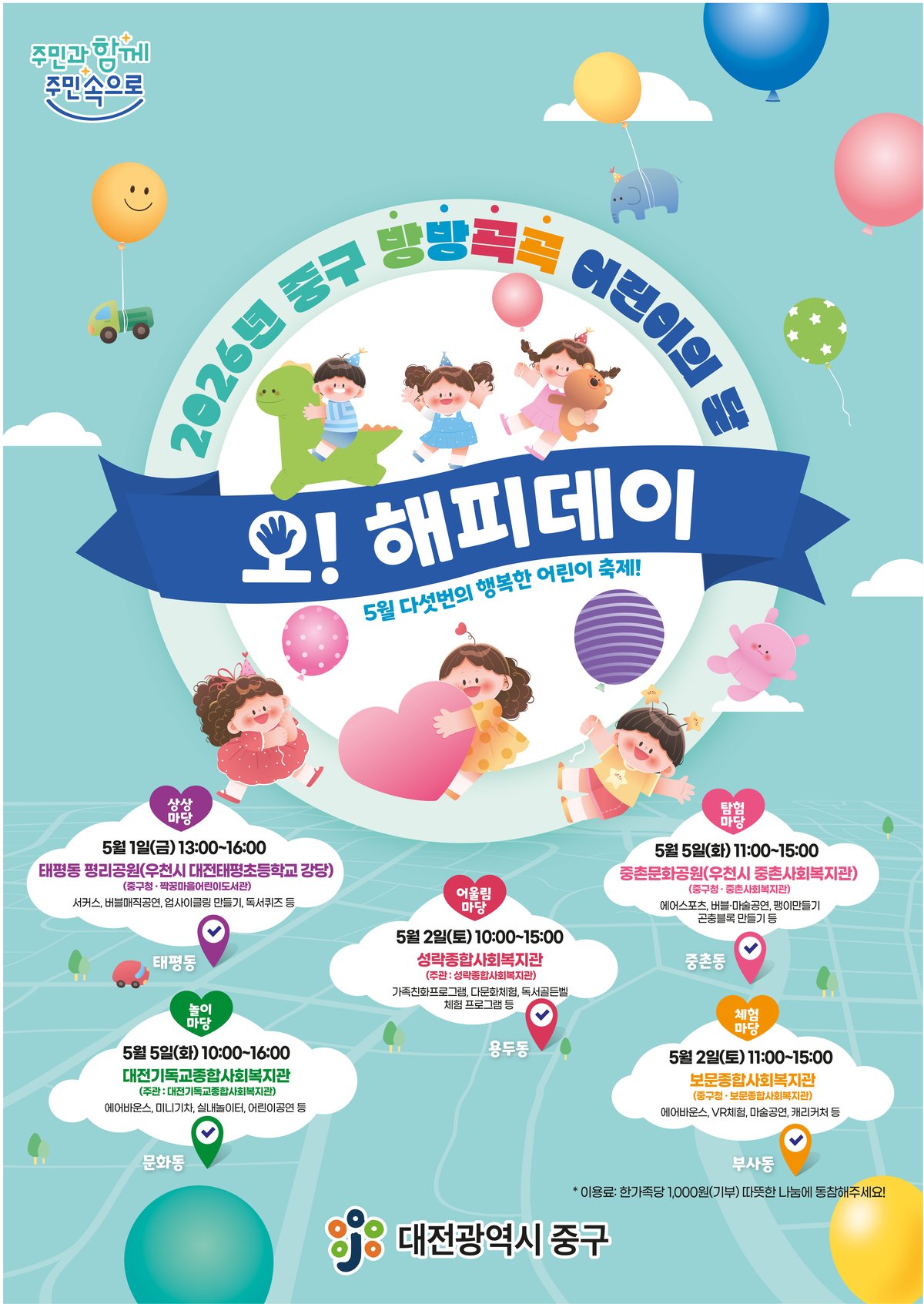 [충청뉴스큐] 대전 중구가 다가오는 5월 1일부터 5일까지 2026년 중구 방방곡곡 어린이의 달 오 해피데이 어린이달 축제를 개최한다고 밝혔다.