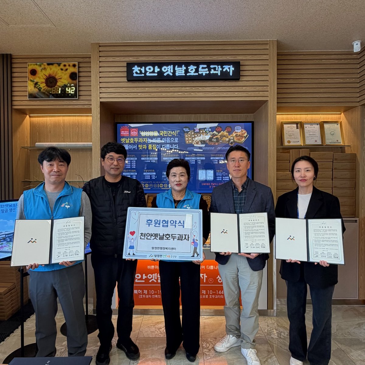[충청뉴스큐] 탕정면 행복키움추진단은 지난 24일 천안옛날호두과자 탕정점과 후원협약을 체결했다.