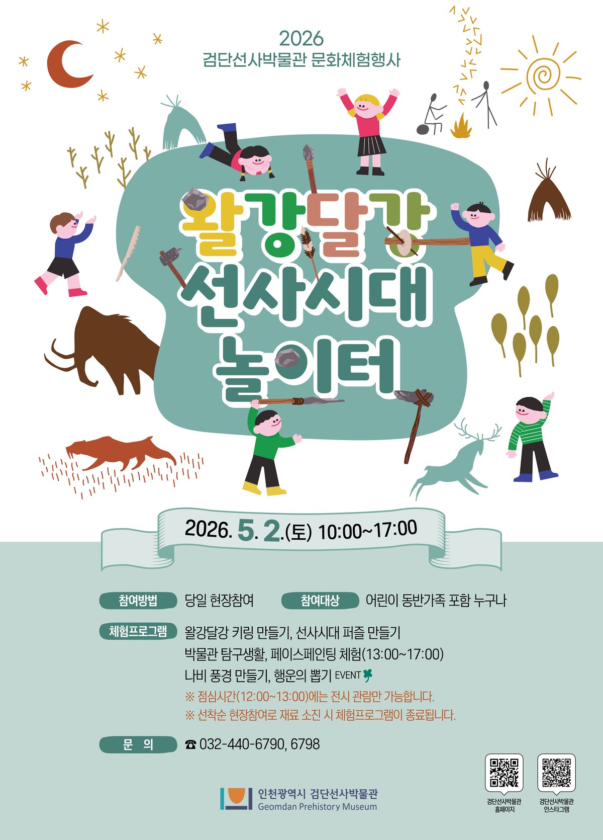 조규명 인천시 검단선사박물관장은 “박물관을 방문하는 시민들이 선사시대 역사와 문화를 쉽고 재미있게 접할 수 있도록 이번 체험행사를 준비했다”며 “어린이를 비롯한 가족 모두가 함께 즐기는 화목한 시간이 되길 바란다”고 말했다.