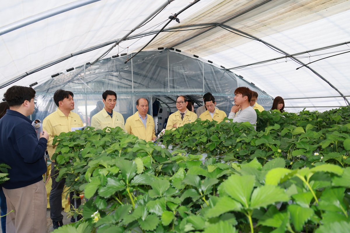 현장에서는 양액재배 시스템을 통한 정밀한 산성도·전기전도도 관리와 신품종 시험재배 계획 등 스마트농업 기반 운영 상황을 중점적으로 확인했으며 청년농업인의 초기 정착 과정에서의 애로사항과 개선 필요사항에 대한 의견도 수렴했다.