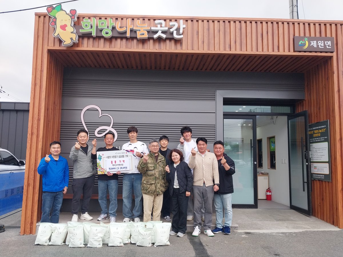 [충청뉴스큐] 한국타이어 씨조 오피엘라인장들은 지난 24일 금산군 제원면희망나눔곳간에 30만원 상당의 백미를 후원하며 따뜻한 이웃사랑을 실천했다.