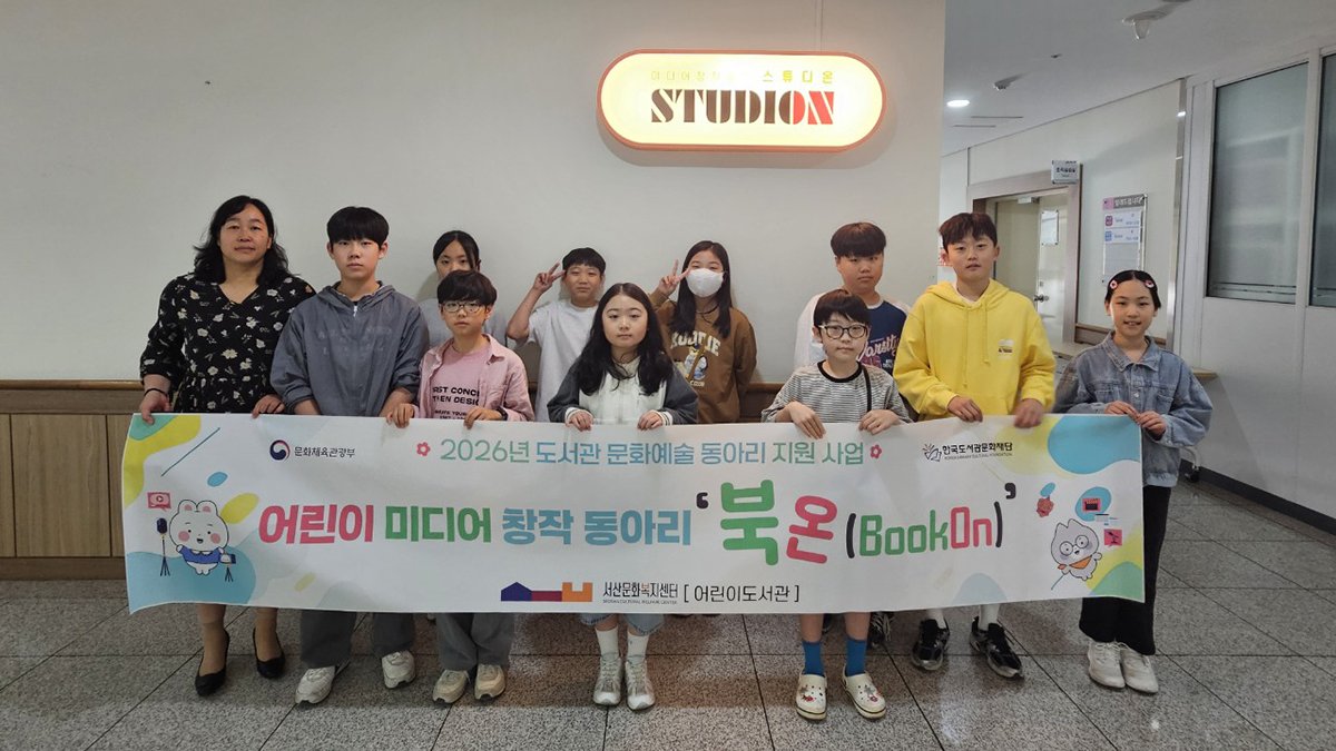 [충청뉴스큐] 서산문화복지센터 어린이도서관은 문화체육관광부가 주최하는 ‘2026년 도서관 문화예술 동아리 활동 지원 사업’에 선정, 작년에 이어 어린이 미디어 창작동아리 ‘BookOn'운영을 시작했다고 밝혔다.