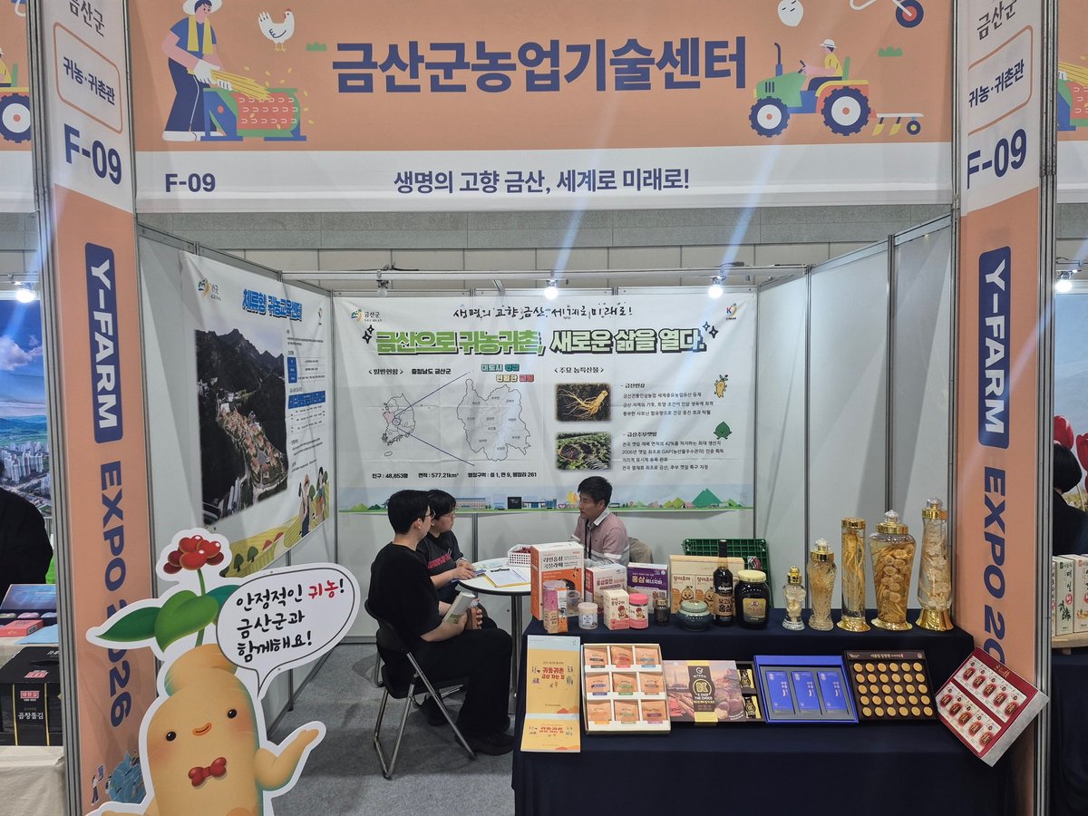 [충청뉴스큐] 금산군은 지난 24일부터 26일까지 수원컨벤션센터에서 열린 와이-팜 엑스포 2026에 참가해 귀농귀촌을 희망하는 도시민들을 대상으로 맞춤형 정착지원 정책과 다양한 귀농 정보를 전달했다.