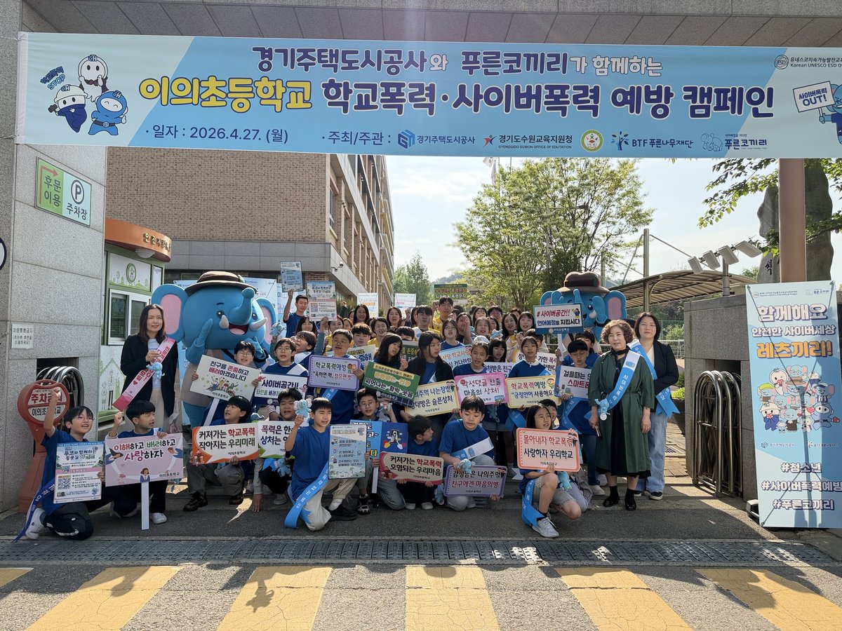 [충청뉴스큐] 경기주택도시공사가 수원시 이의초등학교에서 사이버 학교폭력 예방을 위한 등굣길 캠페인과 찾아가는 예방교육을 실시했다고 27일 밝혔다.