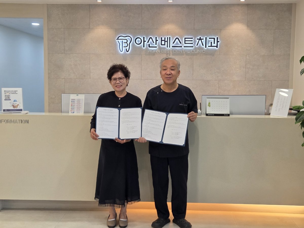 [충청뉴스큐] 아산시는 아산시장애인가족지원센터와 아산베스트치과가 장애인 가족의 구강 건강 증진 및 복지서비스 확대를 위한 업무협약을 체결했다고 밝혔다.
