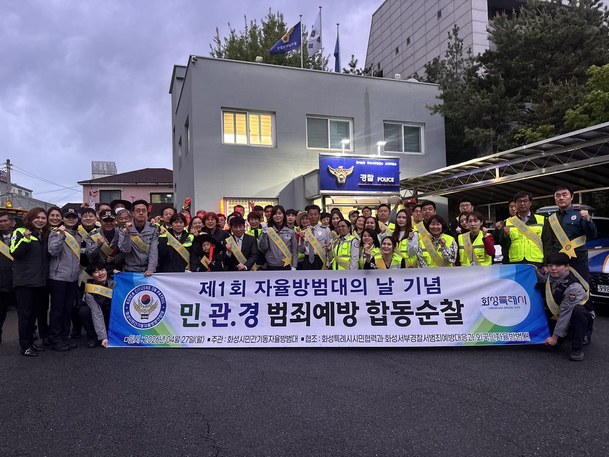 [충청뉴스큐] 화성특례시는 제1회 자율방범대의 날을 맞아 지난 27일 남양시장 일대에서 화성서부경찰서 서부민간기동자율방범연합대와 함께 민·관·경 합동순찰을 실시했다.