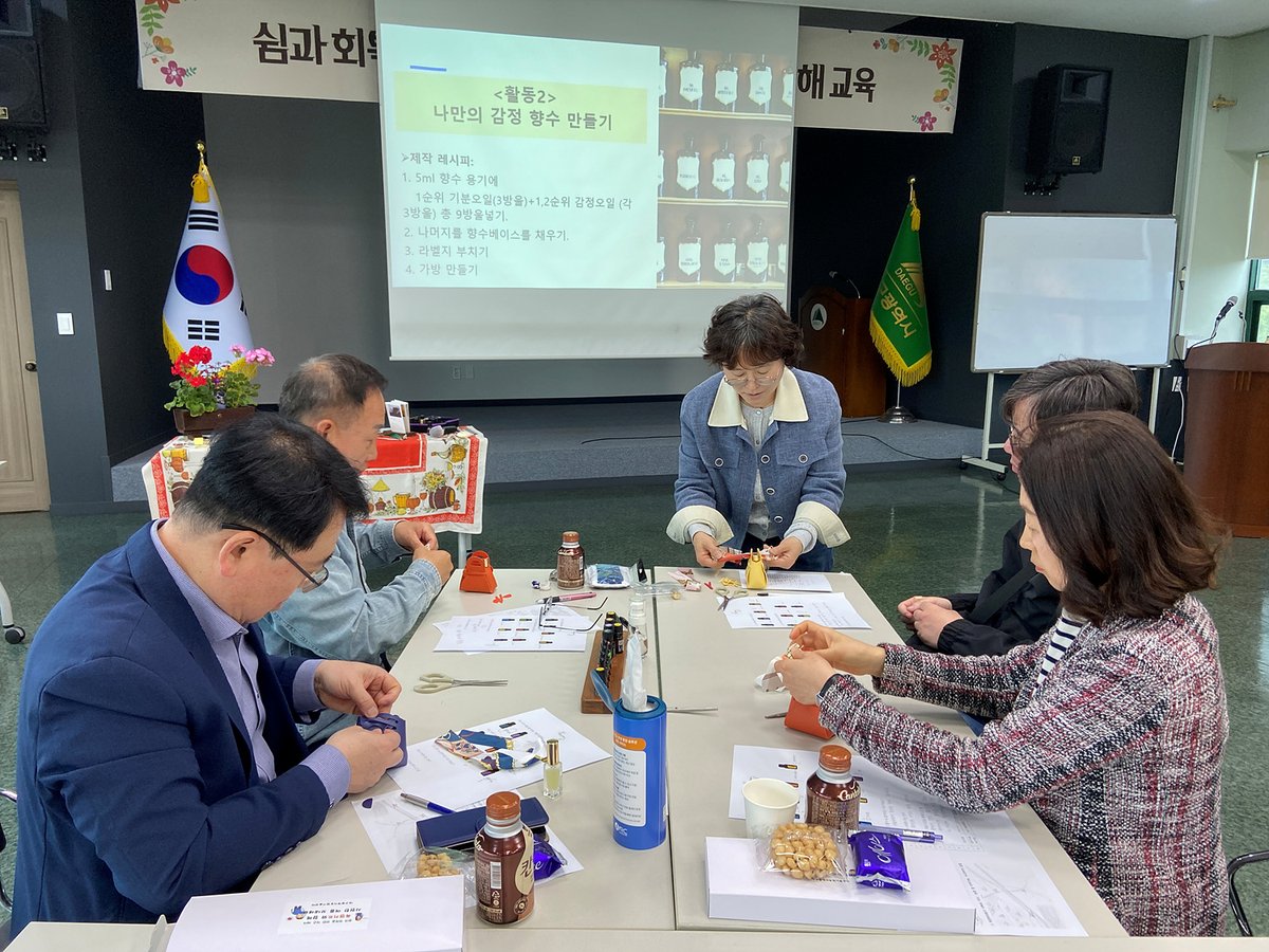 교육은 △치유농업의 개념과 필요성 △치유농업의 효과 및 활용 분야 △농촌자원을 활용한 치유농업 프로그램 실습 등으로 구성됐으며 참여자들은 식물과 향기를 활용한 힐링 프로그램과 동물 교감 활동을 직접 체험하며 ‘ 쉼과 회복’의 가치를 경험했다.