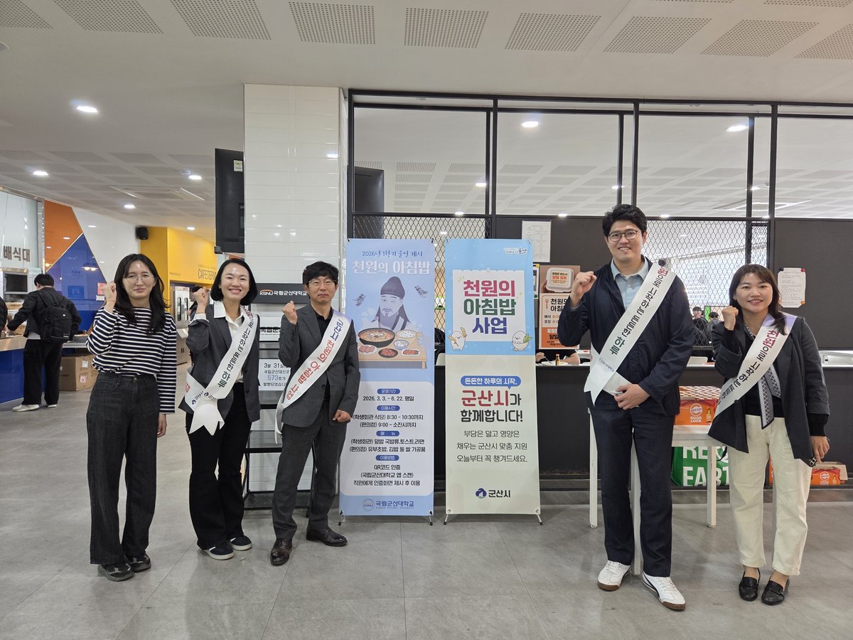 [충청뉴스큐] 군산시가 28일 오전, 군산대학교 학생식당을 찾아 ‘천원의 아침밥’ 이용 학생들을 격려하고 사업 지원을 위한 현장 홍보 활동을 펼쳤다.